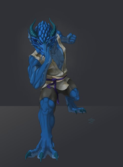 Roger, the blue Dragonborn monk. He is one of our DM's NPCs and I made him as a gratitude piece for our DM's awesome job with the world and narrative he built for us. #DnD #dndart #OC #originalcharacters #Commission #art #digitalartwork