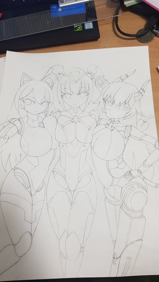 私の最初のメカ娘のイラスト線画描いていた。でも、色はまだ決まっていない。意見をよろしくお願いします。 #illustration #イラスト #メカ娘 #メカ