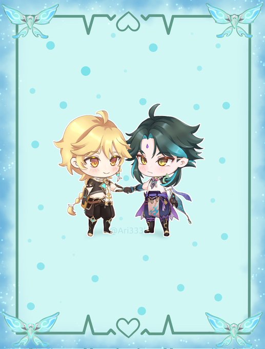 I made a fanart of these two, they are very pretty 💙💙✨ #xiaoven #fanart #GenshinImpact #venti #XIAO #ilustration #dibujo #ilustracion #digitalart