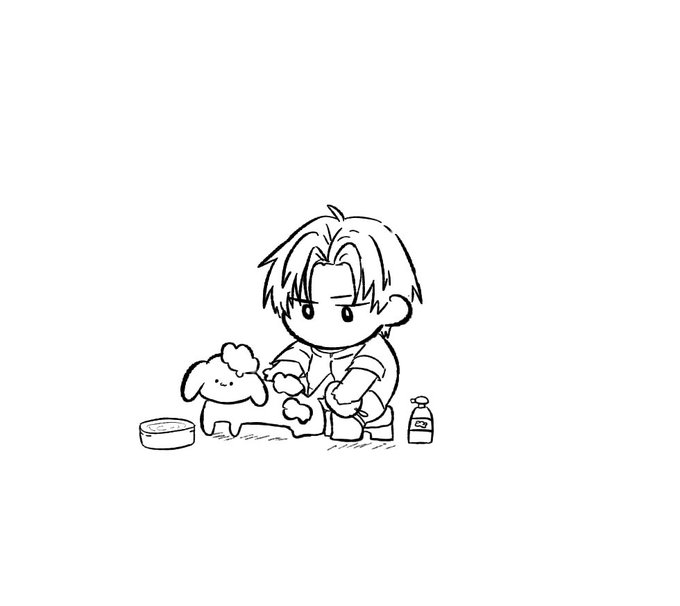 6 54 犬を洗う長谷部を描きました 23/06/30 23:31