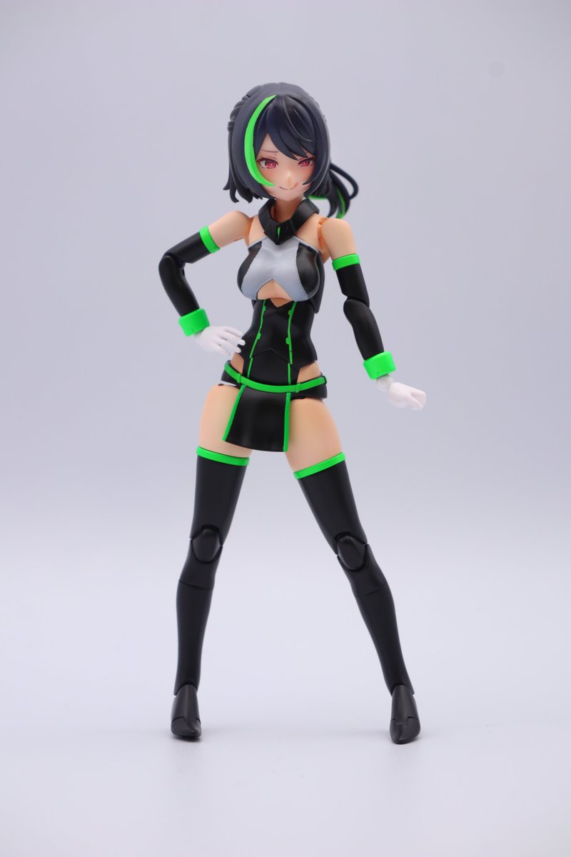 世間では臥薪が出ましたが通常金潟すぐみ組んでます。 おバカっぽいダブルピース好き。 塗分けも苦手な筆塗りも使って頑張ってみました。 #メガミデバイス #アリスギア