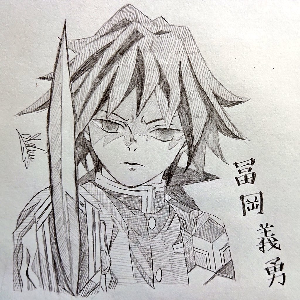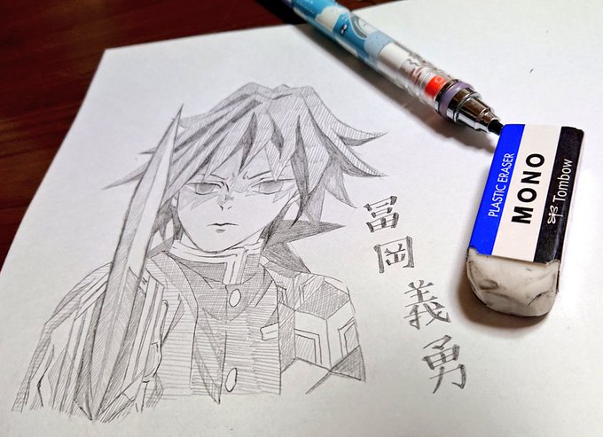 久しぶりの模写 シャーペン1本勝負() #鬼滅の刃 #鬼滅の刃イラスト #冨岡義勇