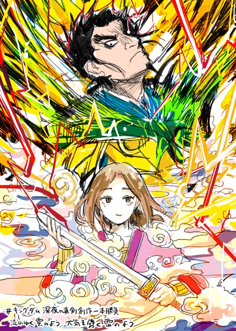 #キングダム版深夜の真剣創作60分一本勝負 流れ行く雲、大気を劈く雷。