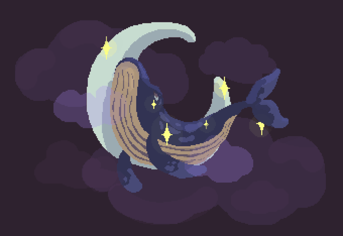 So long, celestial space whale- Today's theme was #SeaCreature . I wanted to try a bigger canvas this time- I think I went too big but it's just so fun to paint @Pixel_Dailies #pixel_dailies