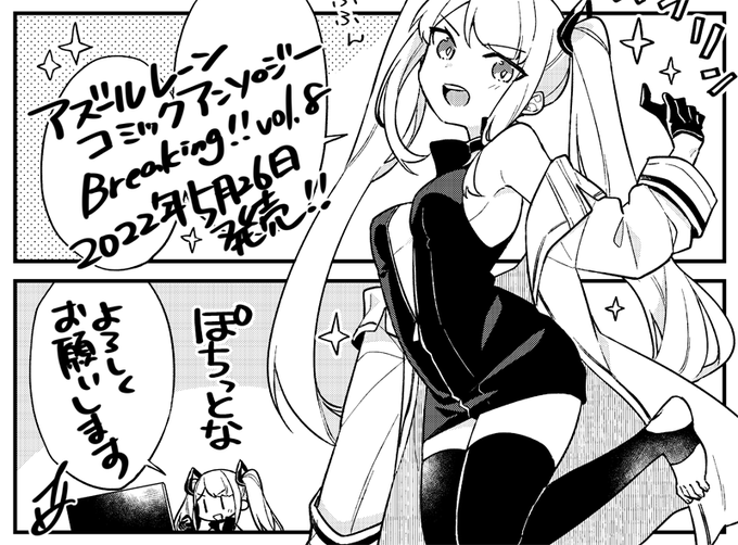 5月26日発売の『アズールレーンコミックアンソロジーBreaking!!vol.8』に4コマで10P参加させていただきました!ソオブラジーテリヌイが指揮官の為のコーヒーで明石とわちゃわちゃする話です。 twitter.com/azurlane_IDC/s…