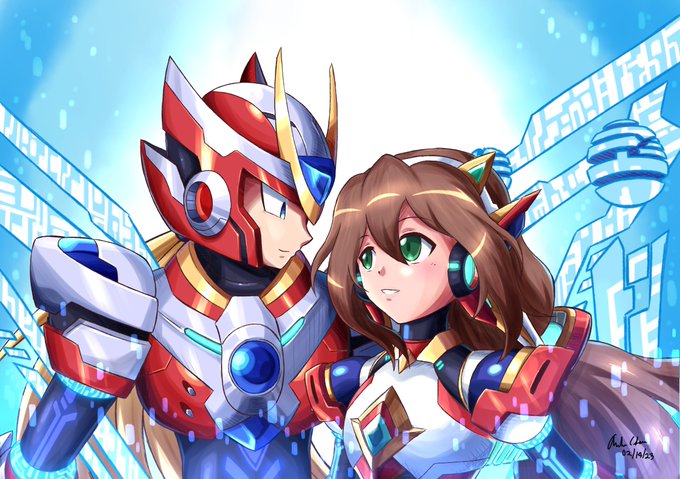 Rockman X DiVE : DiVE Armor Zero and Iris More Digital paint/brush practice. Might as well make it a Valentine's Day piece while I'm at it. #ROCKMANXDIVE #ロックマンXDiVE #ゼロ #アイリス #digitalart #drawing