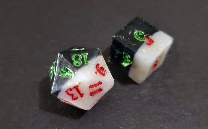 I haven't gotten out the resin in awhile and this was my first time using these molds (not a fan of the font) and i didn't sand them or anything BUT eh I tried a couple randice. White n black pour with some subtle gold fleck inclusions. #ranboofanart sort of.