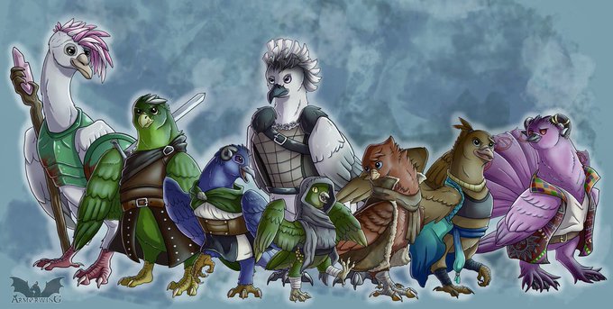 To celebrate completing C2, I made the Mighty Nein as the Meta-Gaming Pigeons! #CriticalRoleArt #MightyNein #bird
