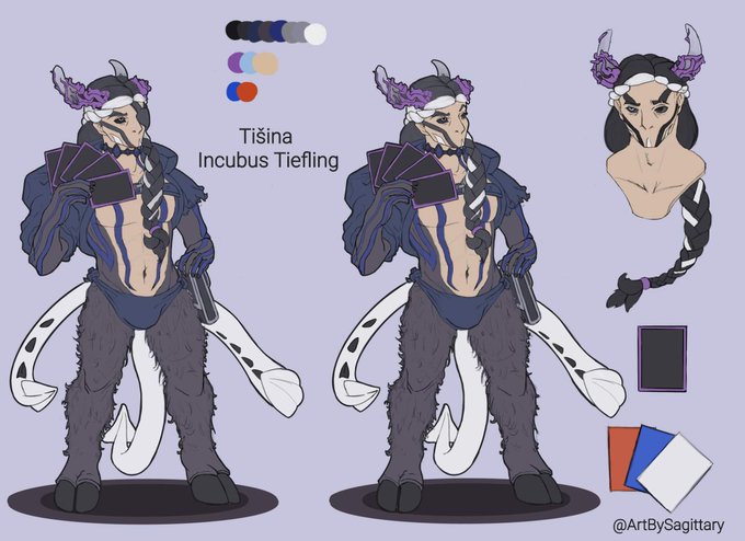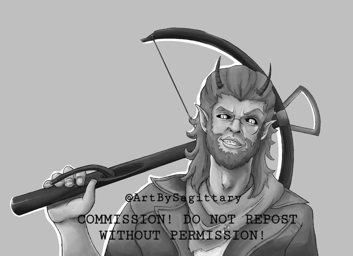 Another #dungeonsanddragons character commission in the books! It's with great pleasure that i am able to share Pazuzu Cerastes, the tiefling bounty hunter! I had a ton of fun helping shape him! #characterart #ArtistOnTwitter #dndart