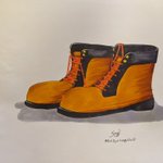 #inktober day 8: Match. Since I drew a flaming match on day 5, I decided to make this a matched set. And please, don't try to figure out the shoelaces. It'll only hurt your brain. It's what I get for disregarding my reference boots. #boots #workboots #dirtyjob #inktoberday8