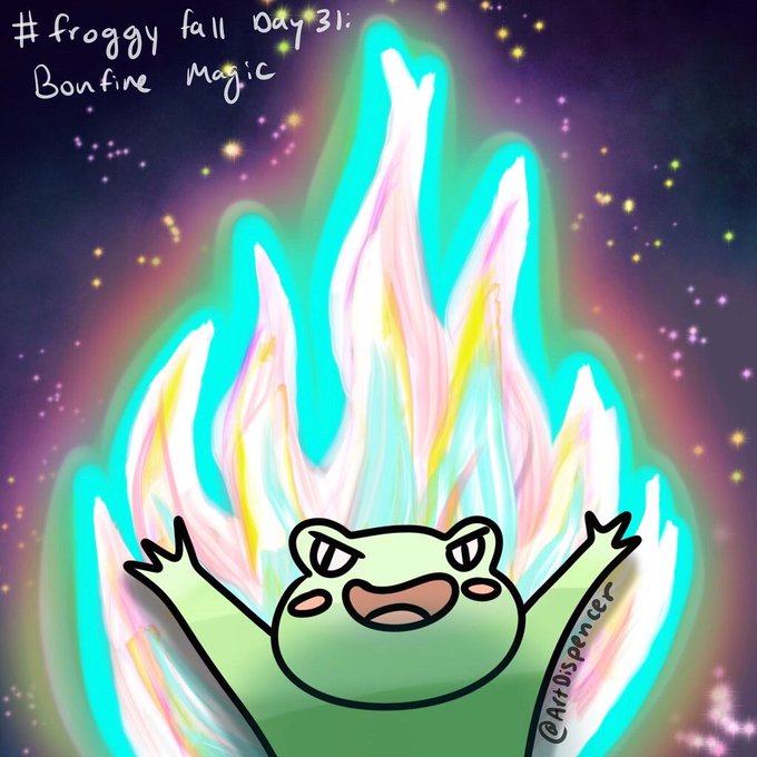 #froggyfall Day 31: Bonfire Magic! Super proud to have actually finished an inktober!!! Woo woo! Thanks for joining me 🤗 #inktober #queerartist #art #frog #fire