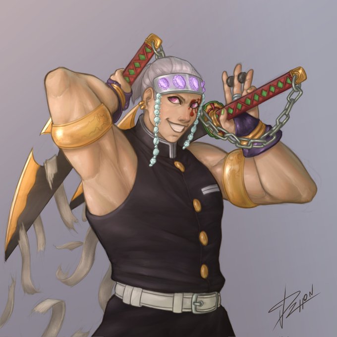 #FANART de #uzuitengen que tenía ganas de hacer algo de #DemonSlayer ,espero les guste 💜💜💜. #digitalart #anime #illustration