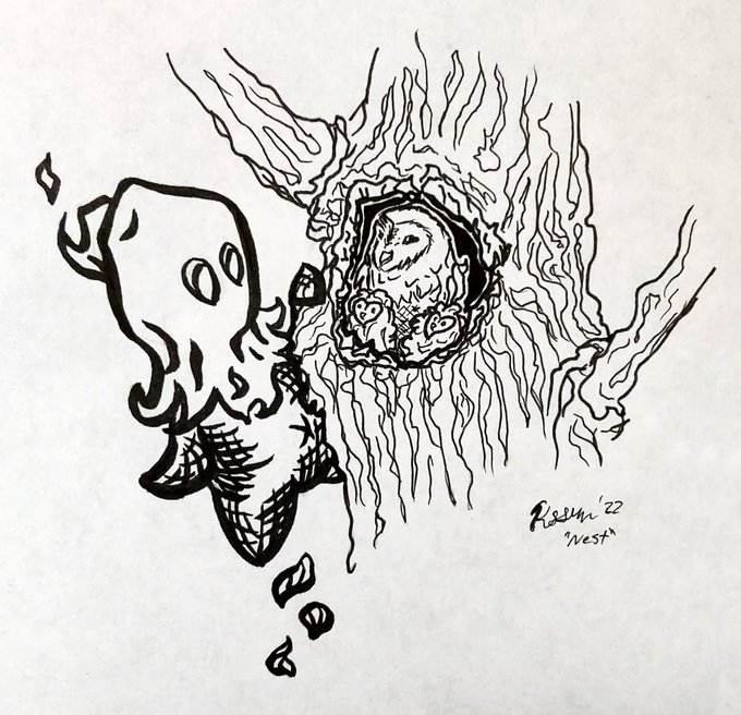 Day 9: Nest 🦉🪹 @inktober #inktober #inktober2022 #inktober2022nest #nest #halloween #Halloween2022 #halloweenart