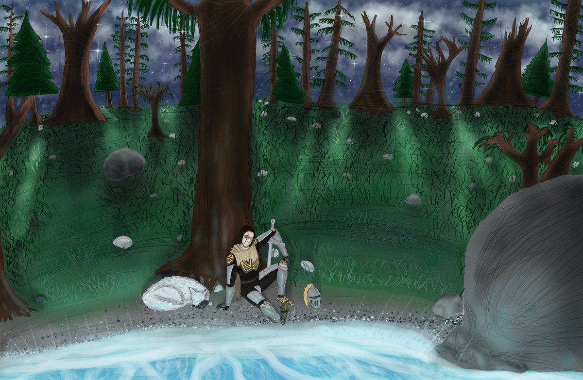 Resting~ Just a nice little atmospheric scene of a knight warrior and his wolf companion taking time off the battle for some well deserved relaxation... Check out the full quality image on my Deviantart : deviantart.com/maikuarts #digitalart #conceptart #illustration #イラスト