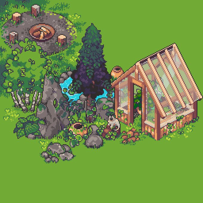 ๐ฑ~ | PEACEFUL PLACE | ~ ๐ฟ Hello there! Iโm start with giving the welcome to the new followers, really thank you guys โบ๏ธ then I updated the WIP with a Greenhouse finally! Hope you like it!๐ชด #WIP #pixel_dailies #pixelart #pixelartist #pixel_studio #nature #topdown #isometric