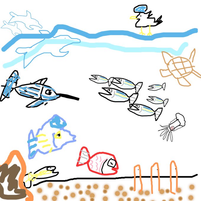 0 15 生態系 #お絵描き #おえかき #絵描きさんと繋がりたい #art #イラスト #LINECAMERA #お絵描き練習 #お絵描き初心者 #ocean 22/08/20 00:15