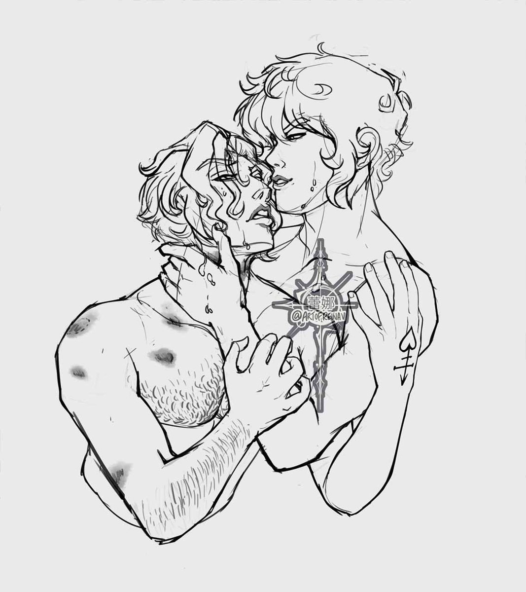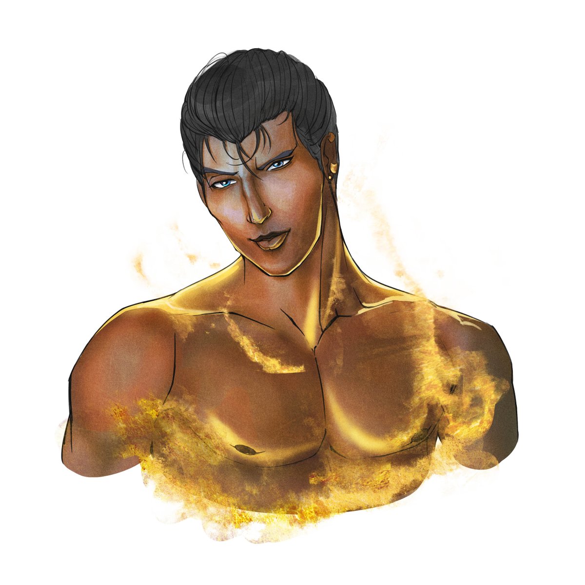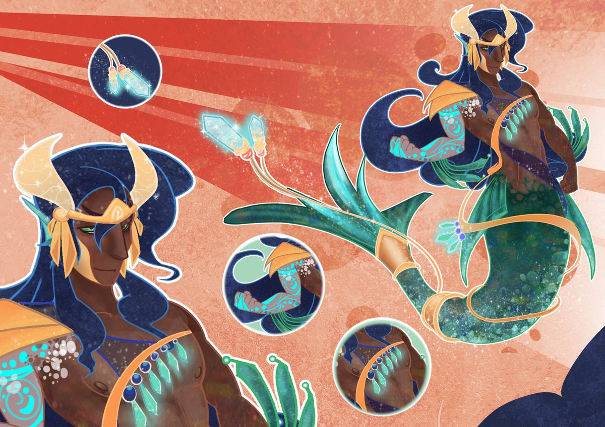 I'm kinda all -blushy- to show my OCs :v It's cause they're all men and people can see that thirst in my OCs :') Jien, the barista and bartender Shahnaz, the King. Andros, the merman. and [unamed horned man 😭] #OCArtistsConnect