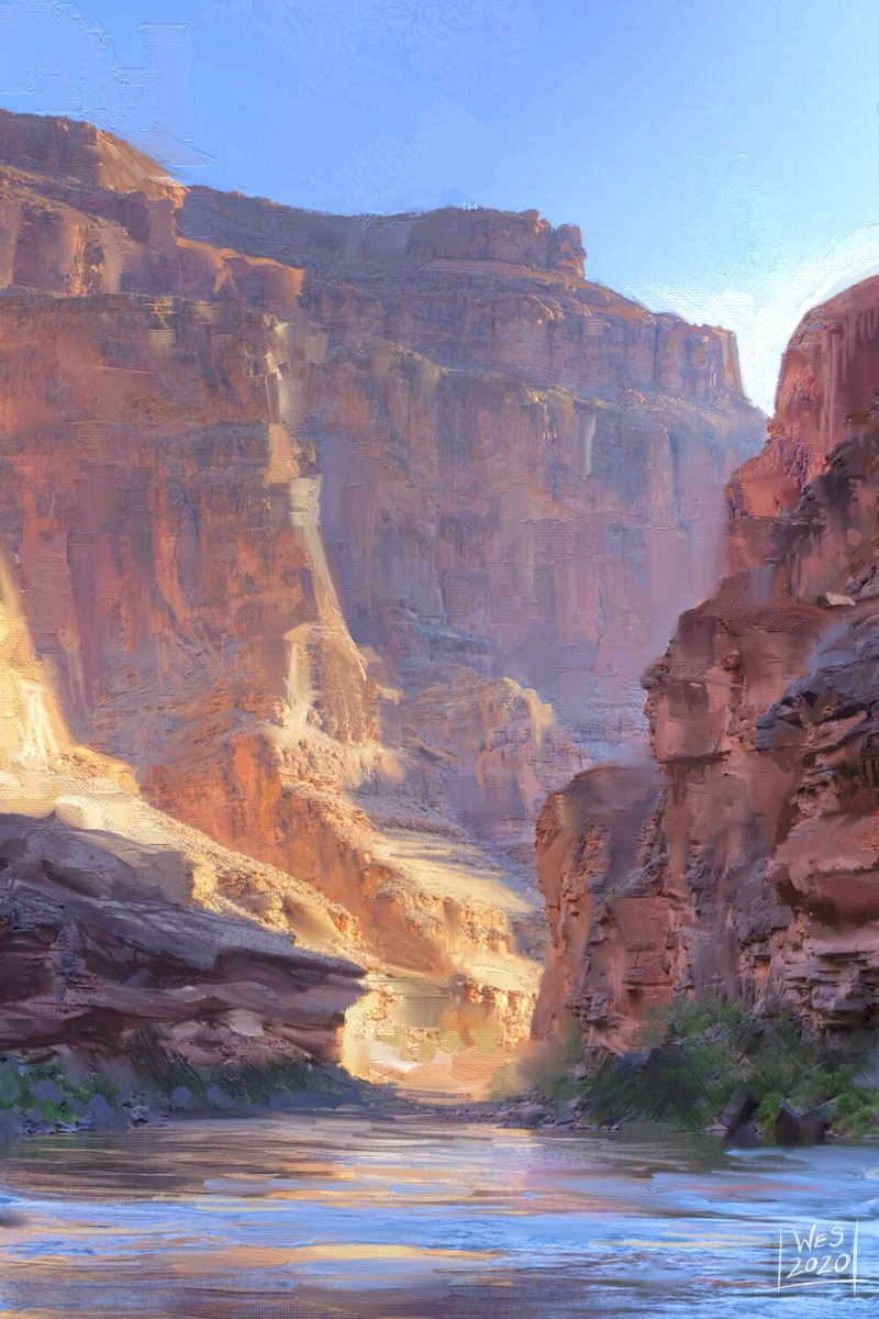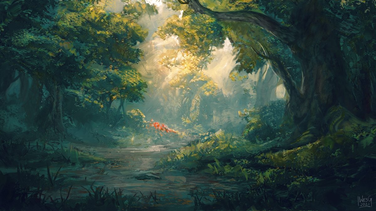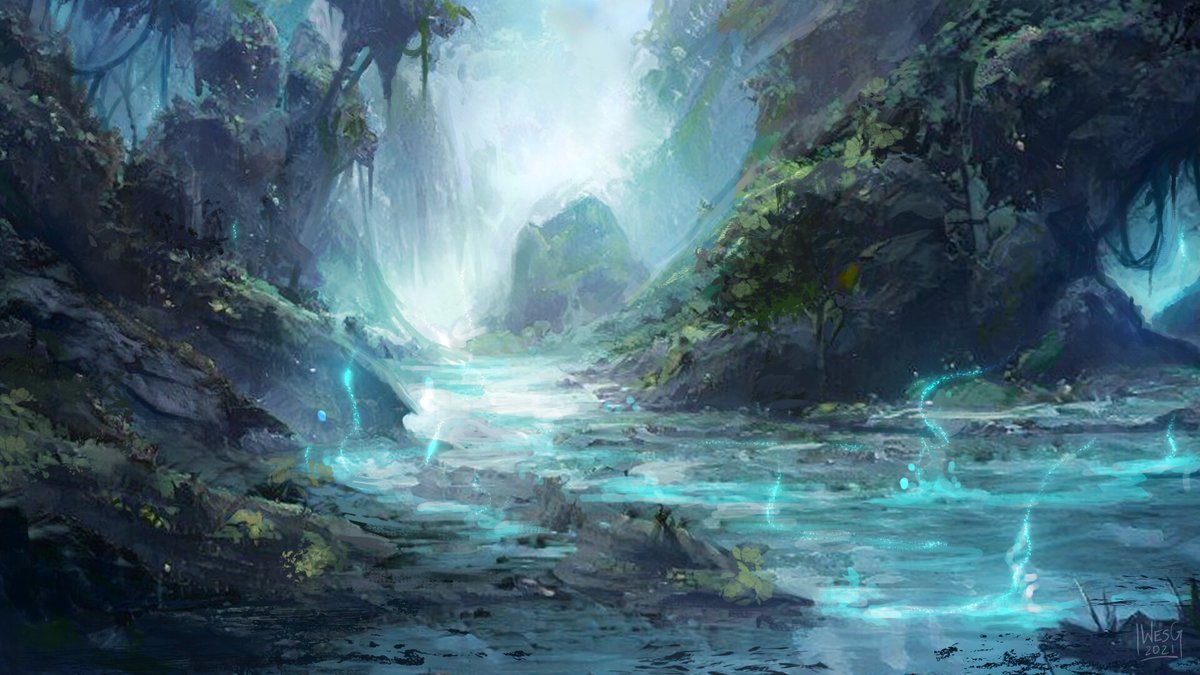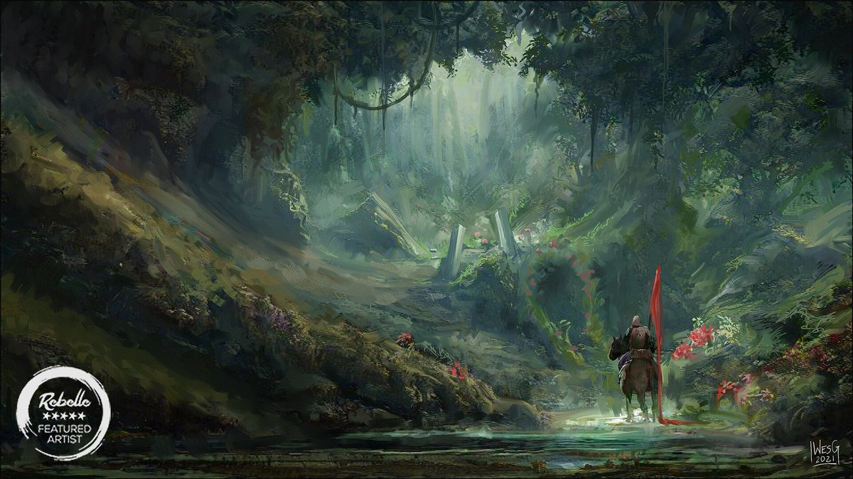 Oh man, it's #PortfolioDay ! I'm Wes, painter and artist for TTRPGs, card games, book covers, spot illustrations, and more! Clients include Star Wars, Warhammer 40k, ADIDAS, WB, Universal, and more NDA! On a landscape kick lately!