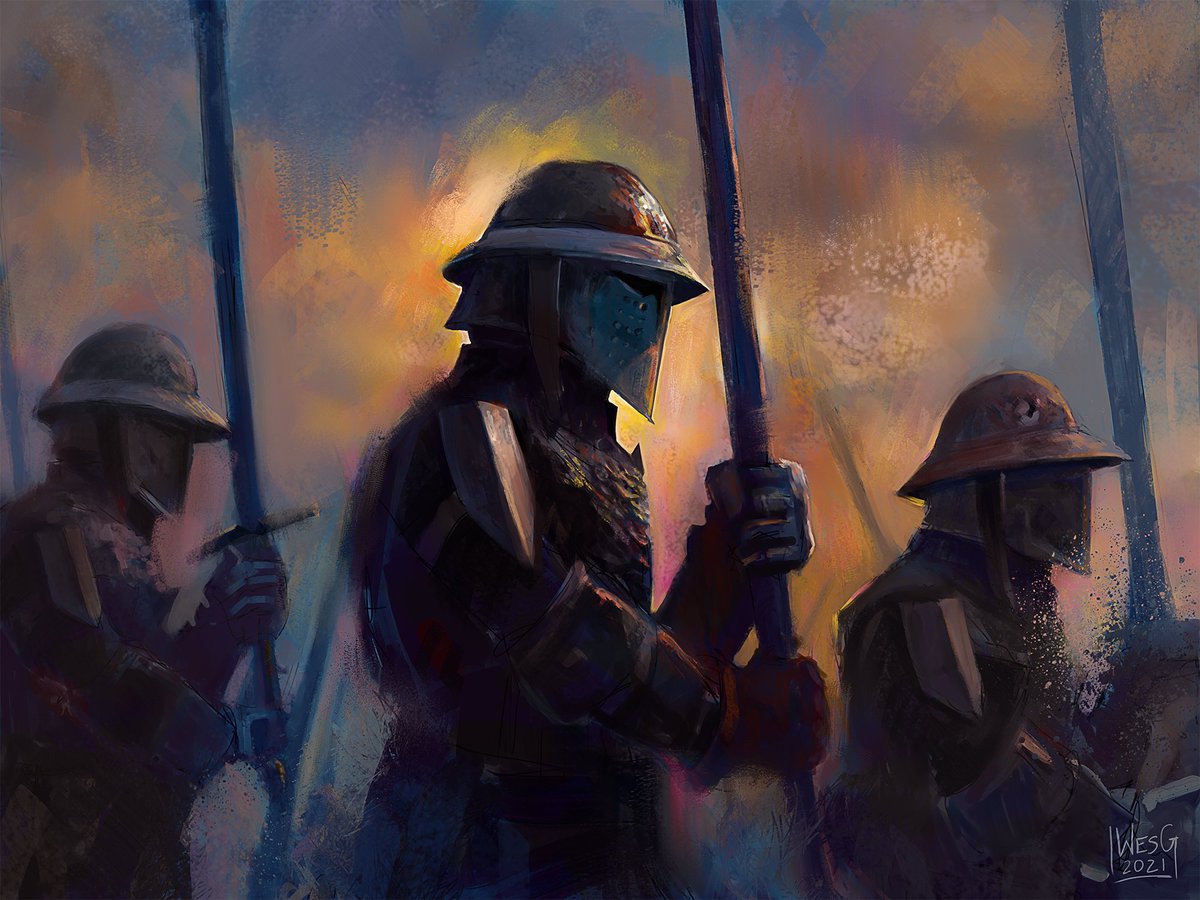 Oh man, it's #PortfolioDay again! I'm Wes, illustrator and artist for TTRPGs, card games, board games, and book covers! Credits include WH40k, Warner Bros, Varia, Riot Games, and a few big ones that are currently NDA 👀👀 Fantasy and sci-fi are my happy places <3