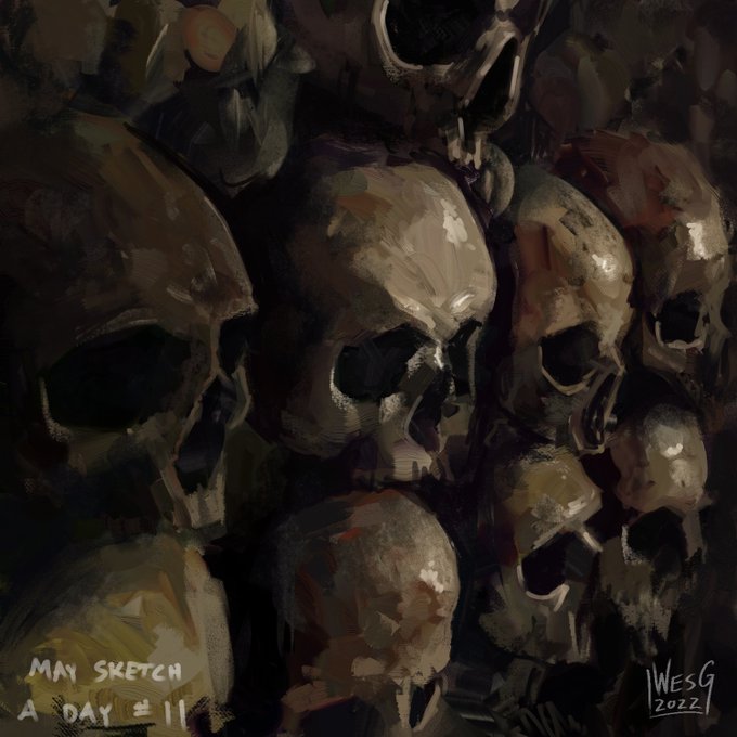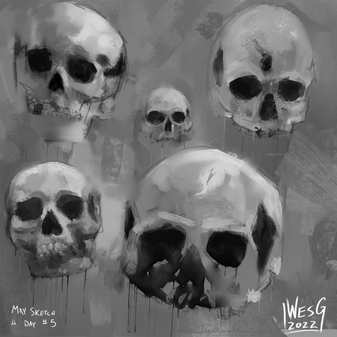 5 of 31 for #MaySketchADay What kind of grimdark WH40k artist would I be if I didn't paint some skull studies from time to time 🤘