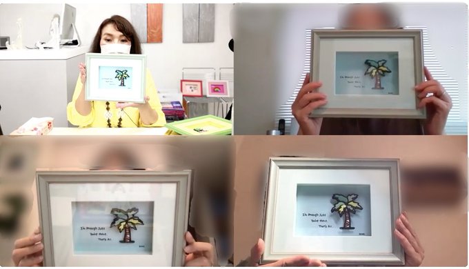 \ #Zoom講座 開催しました / #シャドーボックス 初心者向け講座 講師は大角周子 こちらは、講座の様子と生徒さん完成作品 「椰子の木」 原画作家 ichinoyume氏 #シャドウボックス #ハワイ #プルメリア #ichinoyume #ハンドメイド #オンラインレッスン #紙工芸 #ペーパークラフト #手工芸 #立体 twitter.com/ArtQuick2/st…
