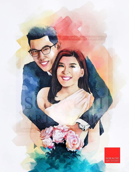 ภาพสีน้ำคู่บ่าวสาว คุณ Aei -คุณ Kan #weddingcouple #couple #wedding #portrait #watercolour #watercolors #watercolorpainting #watercolorportrait #fineart #artlovers #水彩 #水彩画 #수채화 #акварель #aquarelle #artstudio #sorachiartstudio #ภาพเหมือนสีน้ำ #รับวาดสีน้ำ #ภาพเหมือน