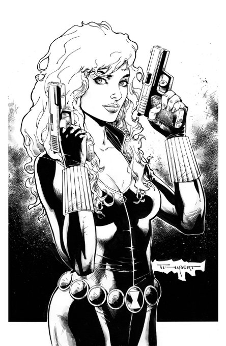 Inktober day 20 #BlackWidow from the T-Bear vault. ENJOY #inktober #inktoberday20 #Comicbookart #Comicbooks #ArtThibert #Marvel