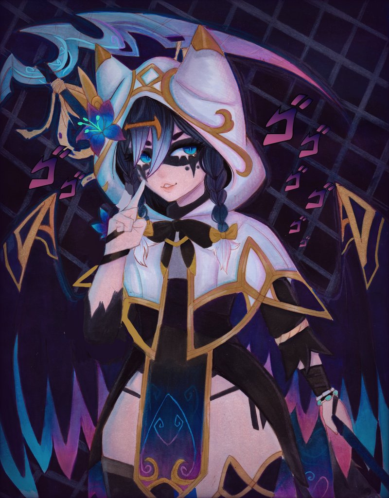 💀(𝔡𝔬𝔫'𝔱)𝔣𝔢𝔞𝔯 𝔱𝔥𝔢 𝔯𝔢𝔞𝔭𝔢𝔯💀 I really loved @snuffyowo new reaper model design!! ,So I made this fanart of it!!✨ #snuffyart #ENVtubers