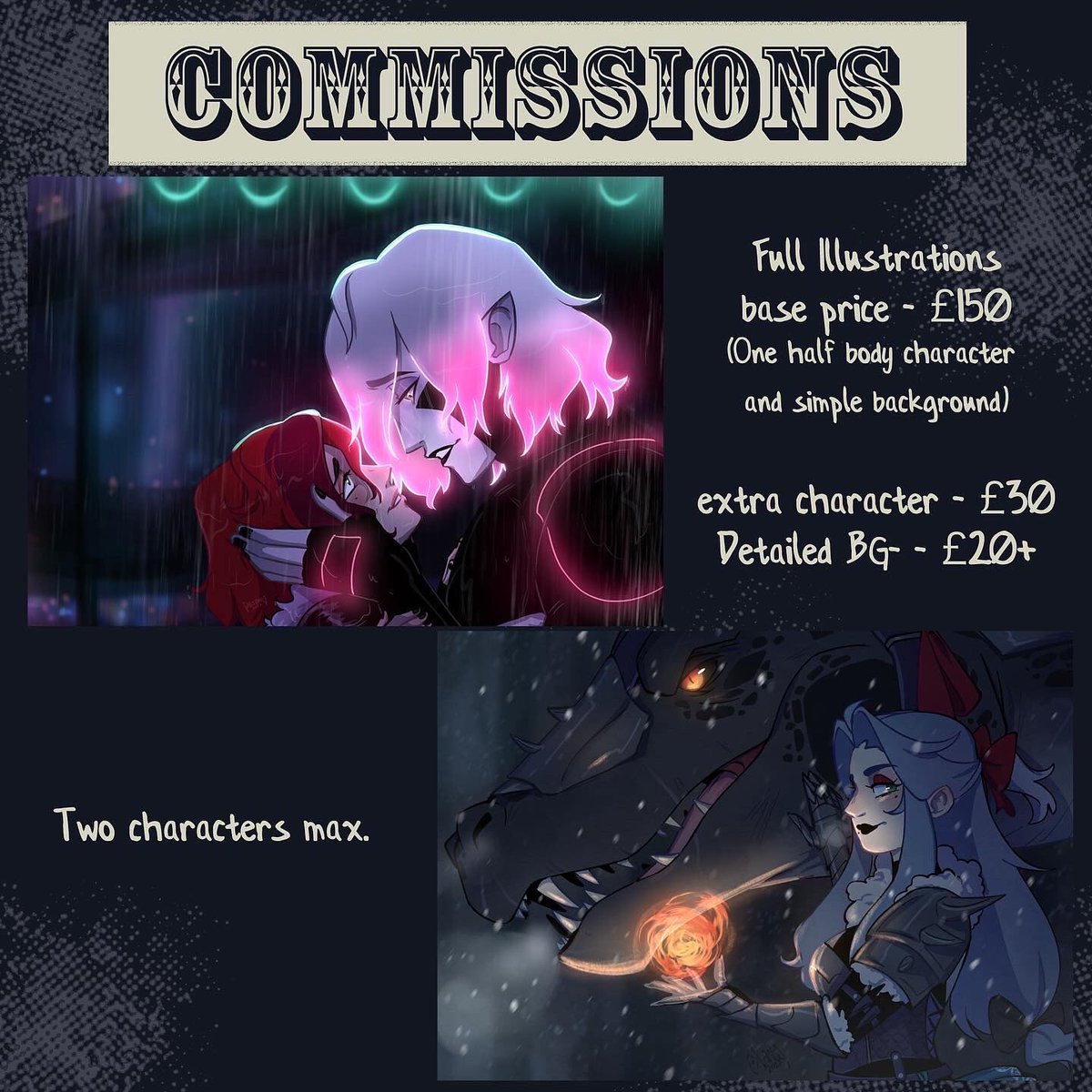 [Art comms open!] I updated my prices recently so thought I’d update here! #ArtCommission #commissionsopen #DigitalArtist #originalcharacter #fanart #animeart