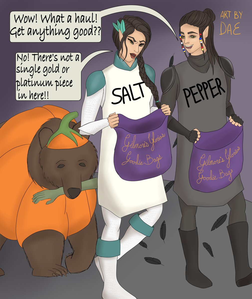 Happy Halloween! Here’s a little comic I scrambled to finish in time! #criticalrolefanart #Halloween #vaxildan #vexahlia #trinket #twins #CriticalRole