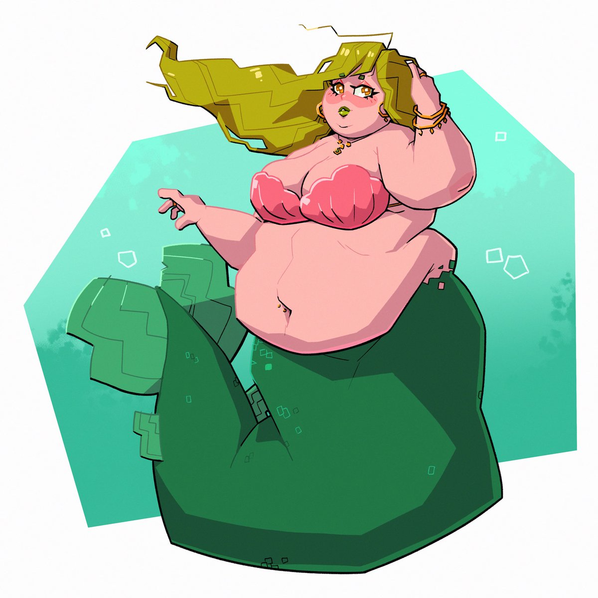 I wanted to do at least one mermaid for Mermay this year, and here she is!!! Cute chonky mermaid ☺️💖 . . #fatart #mermay #bodypositiveart #fatpositive