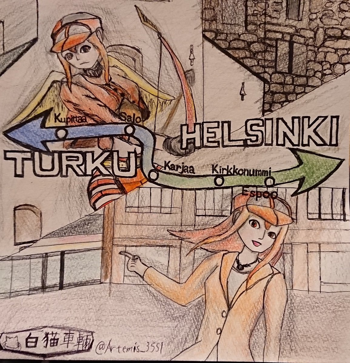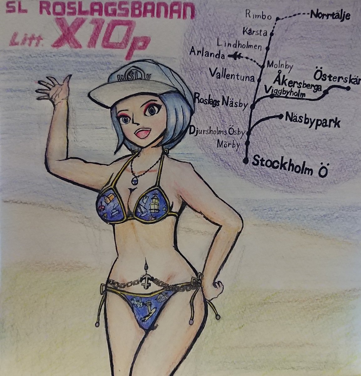 今年もX10pとX15pの水着ツーショットを描いてみました! X15pの座席の柄が判明したので、水着にも反映。 #鉄道擬人化 #Tågspiriten_i_Sverige #Roslagsbananはいいぞ
