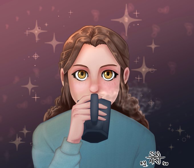 D.31 v2 And with this I'm wrapping up Inktober. Probably my favorite way to paint hair. Simple and clean. I'm getting a hang of thingsI think. Sweetness. #inktober #noprompt #tea #coffee #weather #winter #revision #digitalart #illustration #learning #art #SN_Art #Artimicus