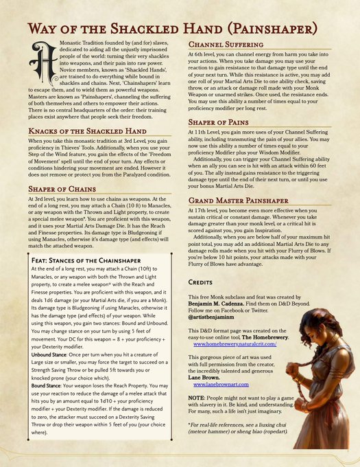 So, I can't remember who it was who asked to see this... but I finally finished this Monk Subclass for #dnd #dnd5e! The Way of the Shackled Hand! #ttrpg #ttrpgfamily #DnDcharacter #dndart #dungeonsanddragons #RPG #wip
