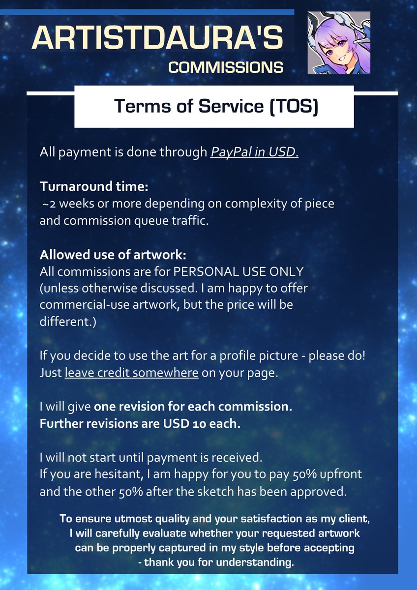 Commissions are OPEN~ I updated my commission sheet to have a brand new look! 🌟Interested or have a question?🌟 Contact me through: - Twitter DM - Discord (ArtistDaura #2934) A commission queue and more examples will be provided below⬇️ #commissionsopen #commission