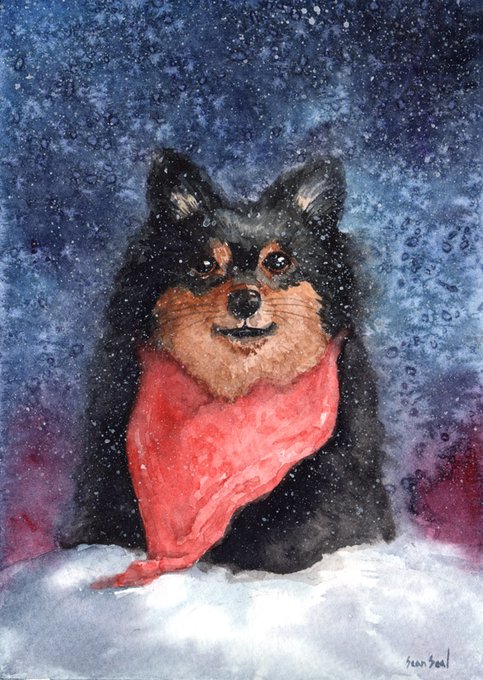 Christmas commission. instagram.com/_thebearpom/ #pomeranian #Pomsofinstagram #BearPom #petportraits #watercolor