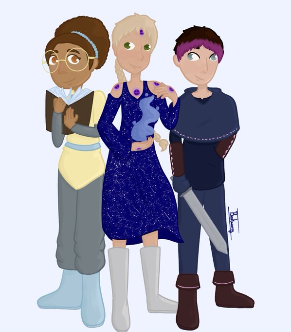 It's a little rushed, but I've been wanting to do this for awhile! My characters as DnD characters! Astrid would be an Order of Scribes Wizard, Celeste would be a Runechild Sorcerer, and Corbin would be a Beast Master Ranger! #digitalart #dndart