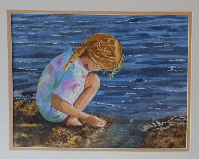 Day 13 #ArtAdventCalendar Deep in Wonder #Watercolor of my niece Jill, at abt 6yrs old. She's now 27 & last night she gave birth to her first child! A very healthy 9.5-pound girl! They named her Wren. 🥰 #watercolourpainting