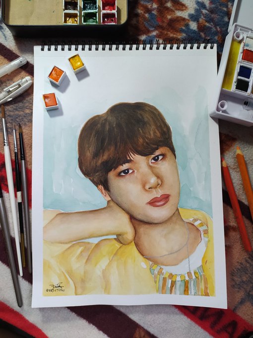A Watercolor Portrait of Kim Seok-jin from BTS ✨🧡 Using Superior wc on canson wc pad✨ Kindly follow me✨ Twitter.com/artistechooo Instagram.com/artistechooo #art #BTSJIN #btsfanart #Watercolor #painting #watercolorpainting #ArtistOnTwitter #BTS #KimSeokjin #JIN