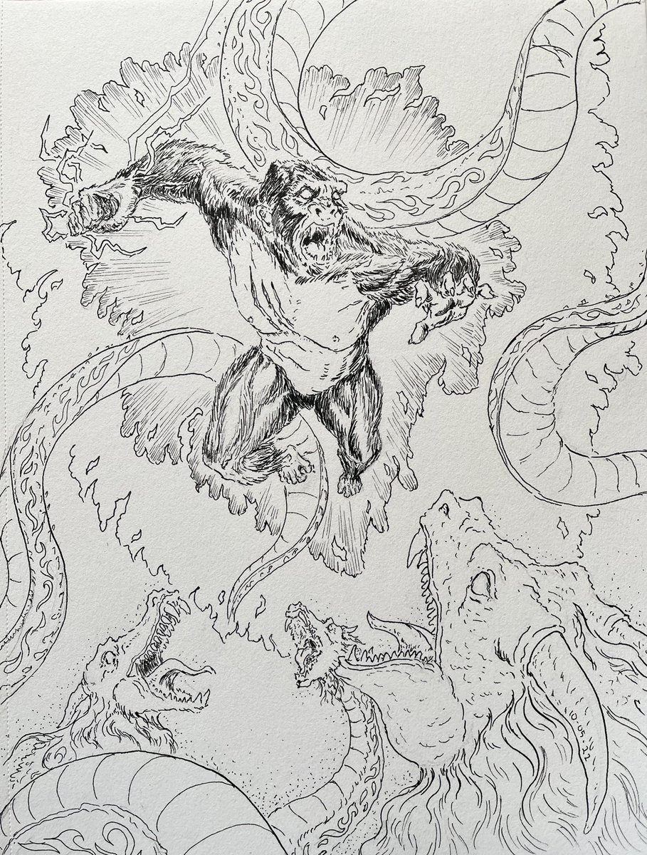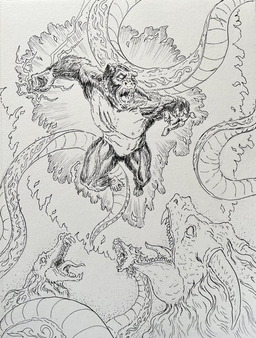 Flame Day 5 of Inktober 2022 The battle rages on between the Great Ape and the Flame Dragons… #inktober2022 #draw #art #sketchbook