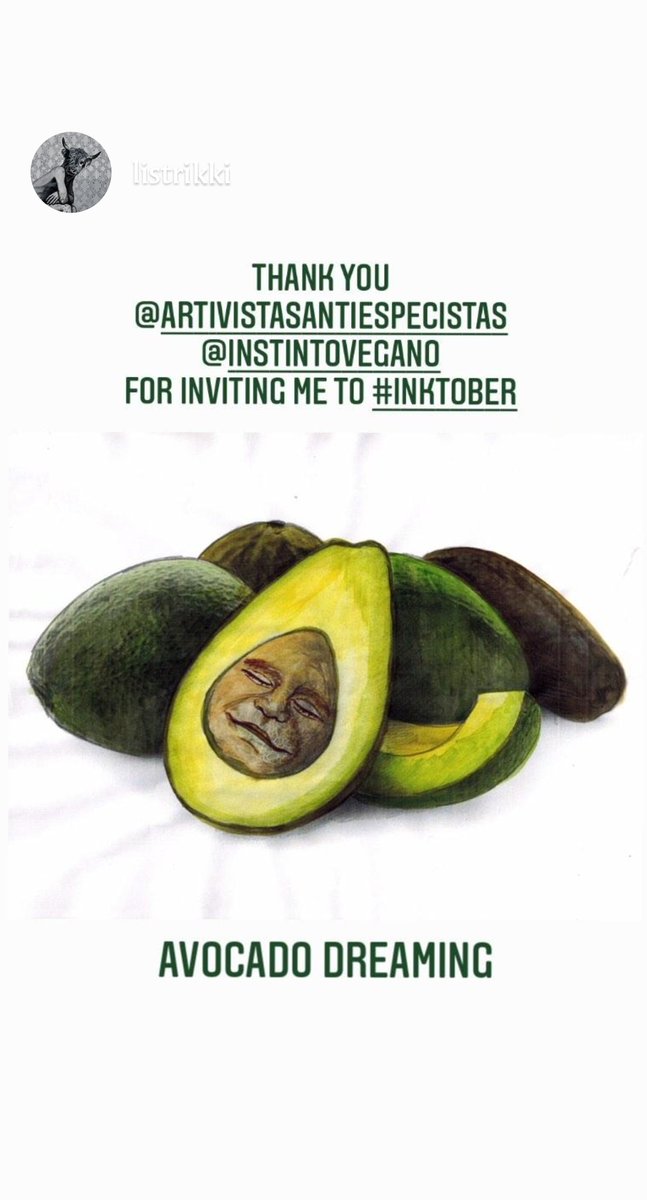 @ listrikki en Instagram, una artivista Austriaca residente de San Francisco, se unió a nuestro reto #inktober2020 de la lista de @InstintoVegano 👌🥑👏😻