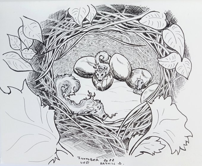 Let there be Dragons - Inktober 2022 #Inktober #inktober2022 #dragons #inkpen #fantasy #traditionalart #artwork #firedrake