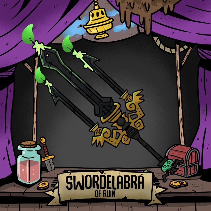 Faux Mountebank’s Homebrew Pop Up Invoice #02 Swordelabra of Ruin Prompt: Candle Art:@artmonkeymg2 Stats:@AntonTaleTeller #swordtember #swordtember2022 #candle #homebrewpopup