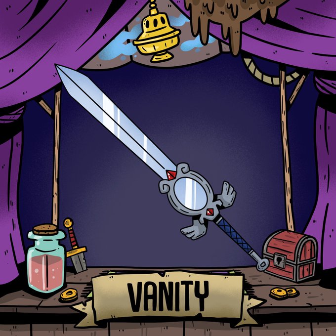 Faux Mountebank’s Homebrew Pop Up Invoice #07 Vanity Prompt: Mirror Art: @artmonkeymg2 Stats: @AntonTaleTeller #swordtember #swordtember2022 #Mirror #homebrewpopup