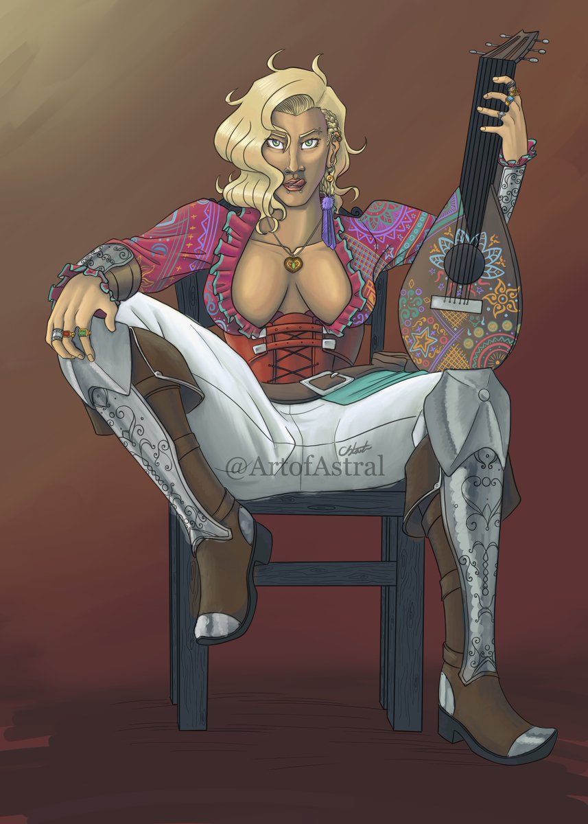 A new character I've recently started playing. Ashley, my changling bard who loves to play on people's desires to get what she wants. #Dungeonsanddragons #5e #dndcharacter #ttrpg #digitalart #dungeonsanddragonsart #Dnd #dndart #tabletopgaming #fantasyart #illustrator #fantasy