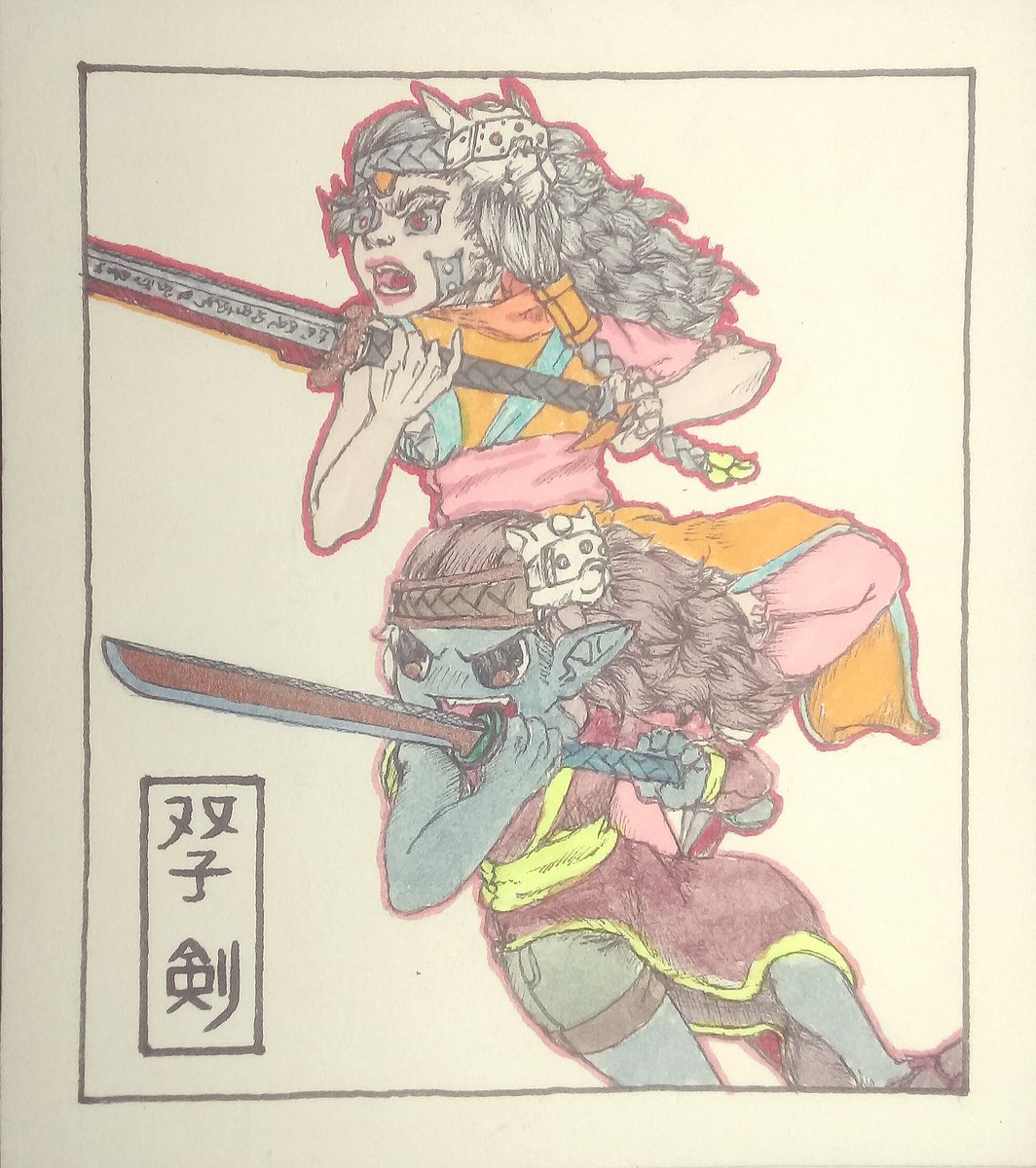 - TWIN BLADES - "You do as I say, a'ight? You push then yell! Push 'n YELL!." - Whispy Vispy Ft. @SkyeVisper #art #illustration #ArtistOnTwitter #illustratorsontwitter #twin #blades #same #mask #samestyle #FoxMask #catmask #双子 #剣 #双子剣 #Inktober2019