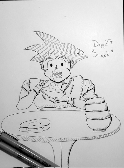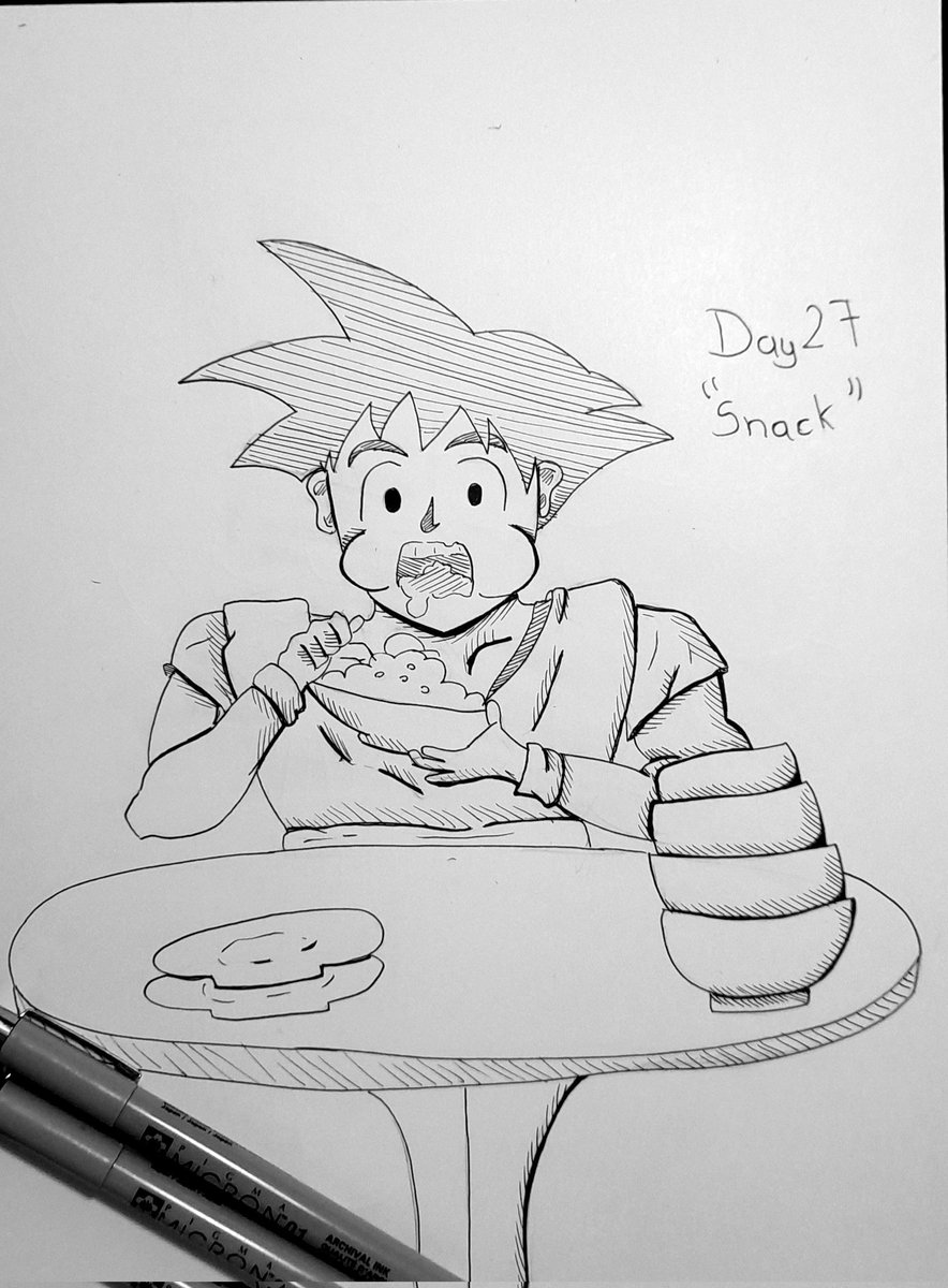 Inktober 2022 day 27 "Snack" #inktober2022 #Inktober #inktober2022day27 #drawing #draw #drawtober #drawingart #DragonBallZ #Goku #DragonBall #fanart #fanart