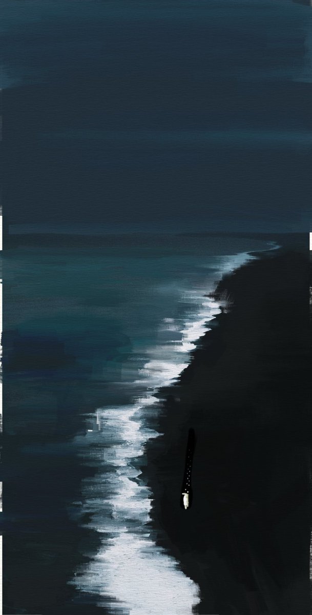 Lonely cat pt2:D Thats a cat if you cant tell:(( I have mistakenly made the canvas size too small that I can't zoom in to properly paint the cat:(( Made with Artrage and finger:)) -- #beach #cat #art #artrage #digital #digitalpaint #paint #painting #sad #aesthetic #dark #shore