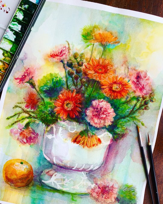 春から夏へー、自然の恵みを大切に。そんな気持ちを育くめるよう教えてます♬ #水彩画 #みんなで楽しむTwitter展覧会 #絵が好きな人と繋がりたい #アナログ #watercolorpainting