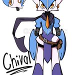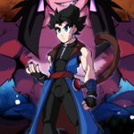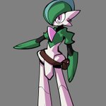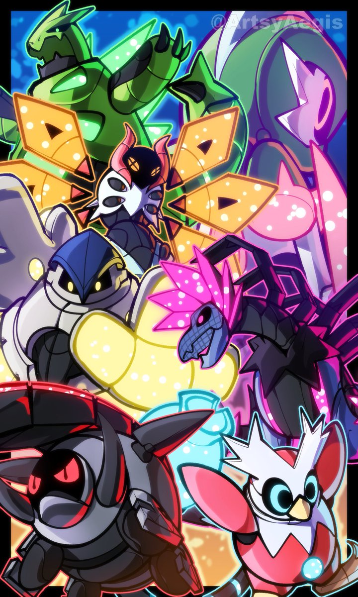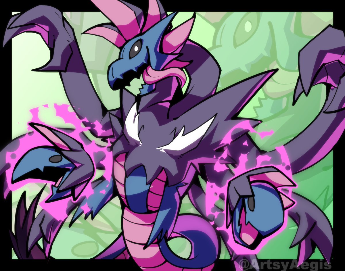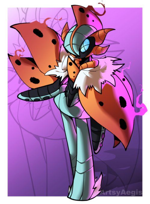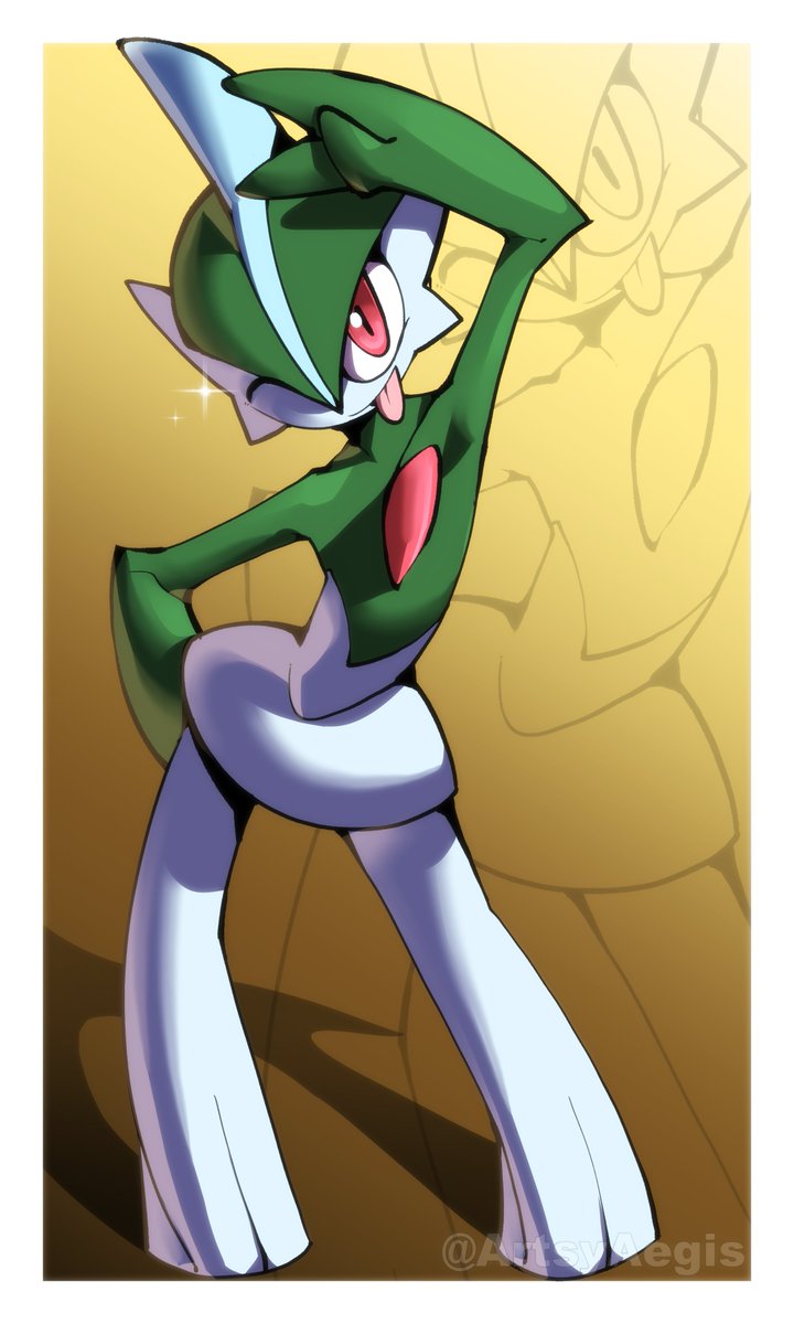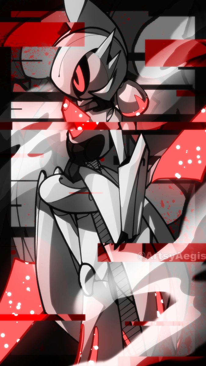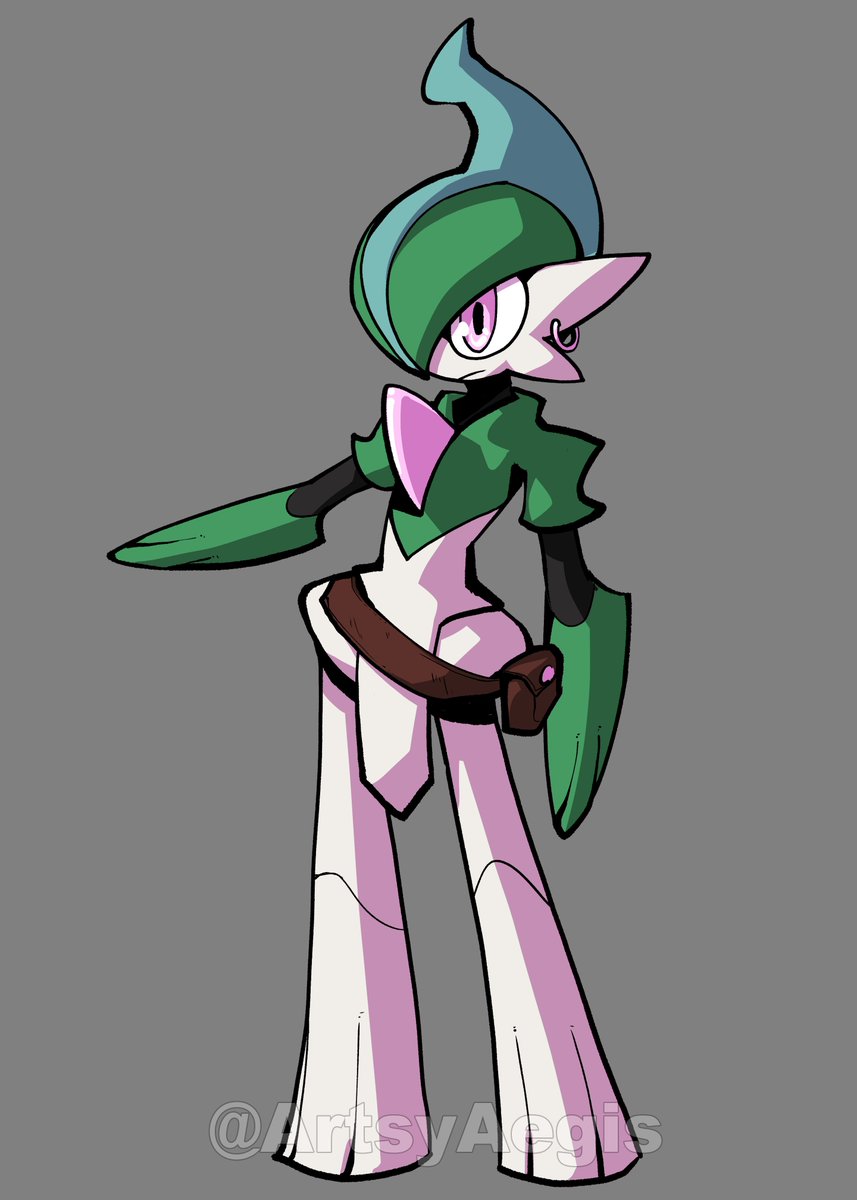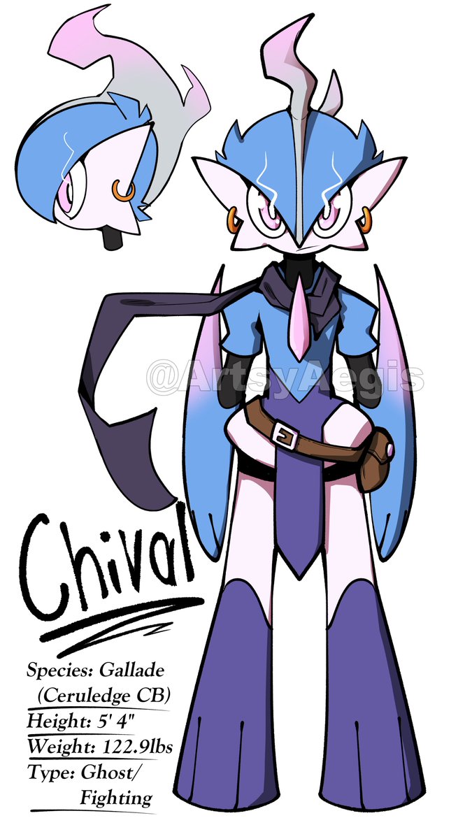 Still a WIP (doesn't even have a name) but he's set to be the main character in a steampunk-y Pokémon world. He's one of the rare "Cross-breed" Pokémon of said world, not exactly fusions, more so Pokémon with traits of both parents. In his case, a Gallade with Ceruledge traits. twitter.com/ArtsyAegis/sta…